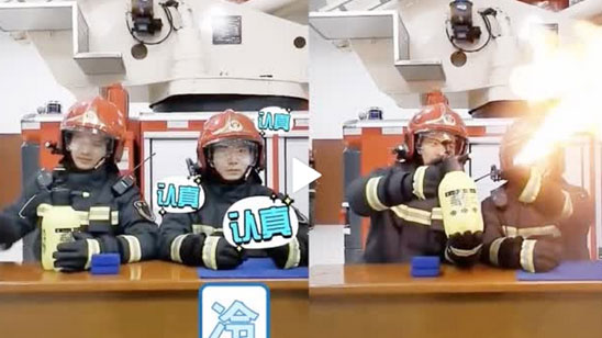 消防员演示酒精消毒起火 不料场面失控仍一本正经灭火