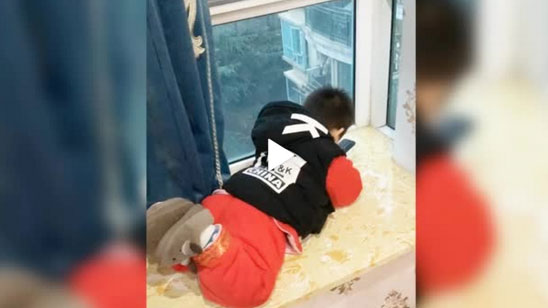 小朋友每天早早起床 手拿遥控器盯着隔壁客厅