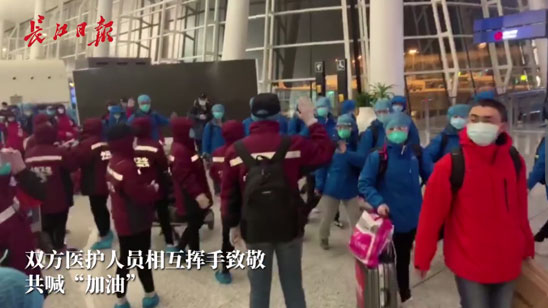 相互挥手致敬!陕西河北医疗队机场偶遇互道加油