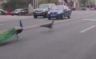 济南街头惊现3只“越狱”孔雀:既然没人来看我 那我出来看你们了