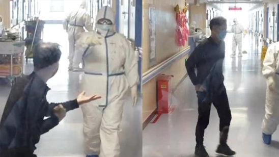 大叔溜出重症病房打太极拳 被医护人员现场“抓包”乖乖回到病房