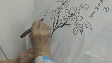 93岁老人给护士防护服画牡丹:我要出院了,送给你
