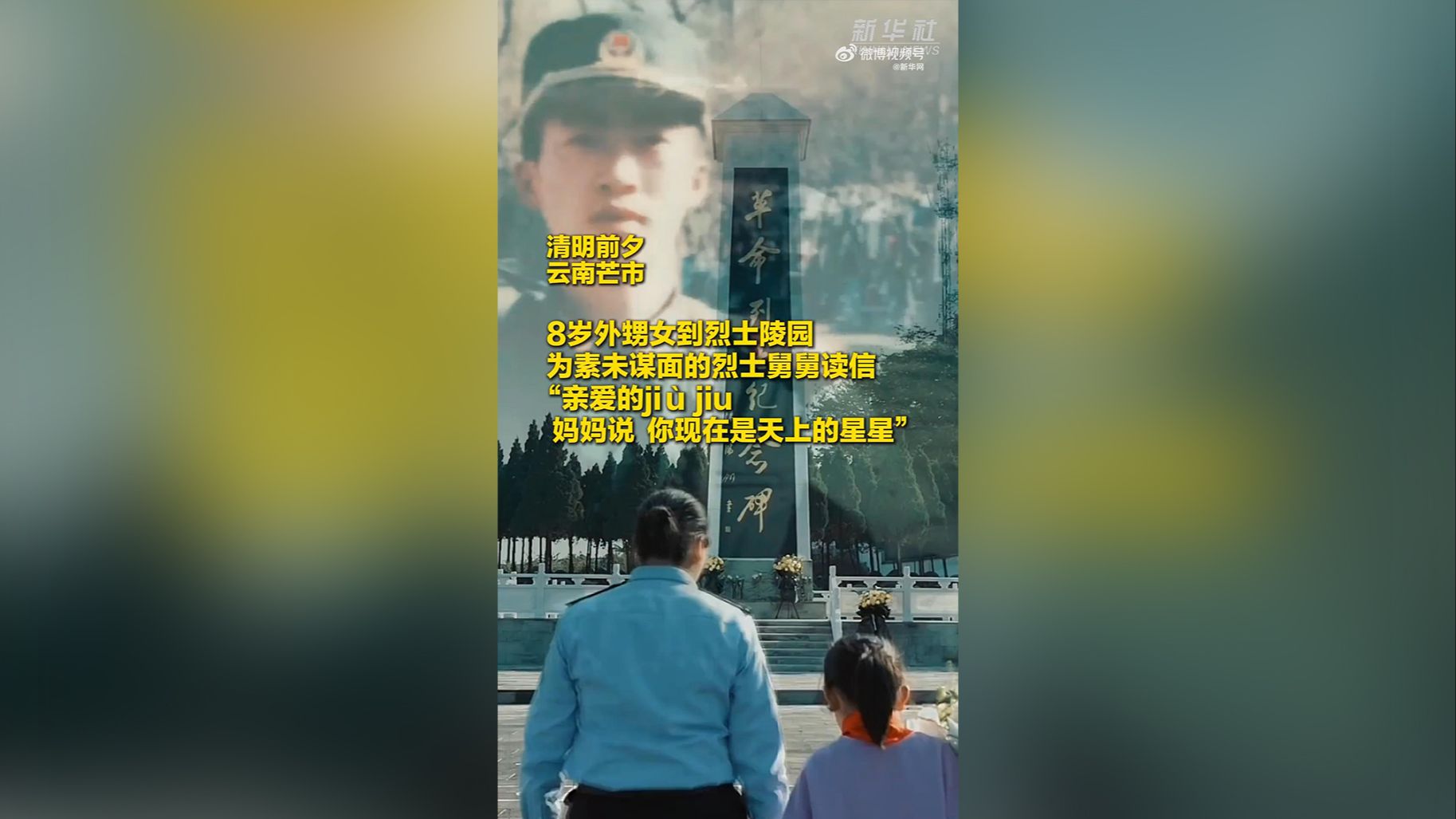 视频 | 泪目!8岁外甥女在墓碑前为烈士舅舅读信