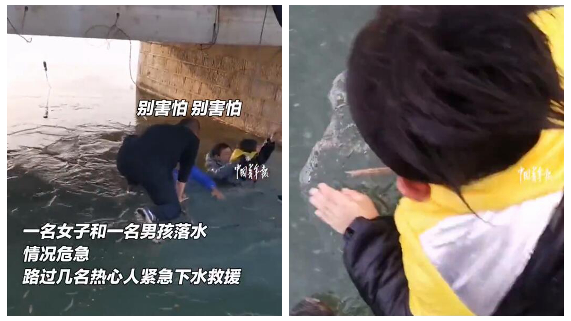视频 | 赞!一名女子和一名男孩落水 路过热心人紧急下水救援