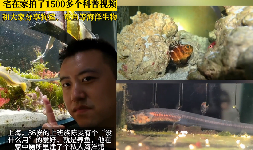 视频 | 小伙在自家厕所里建海洋馆 宅在家拍了1500多个科普视频