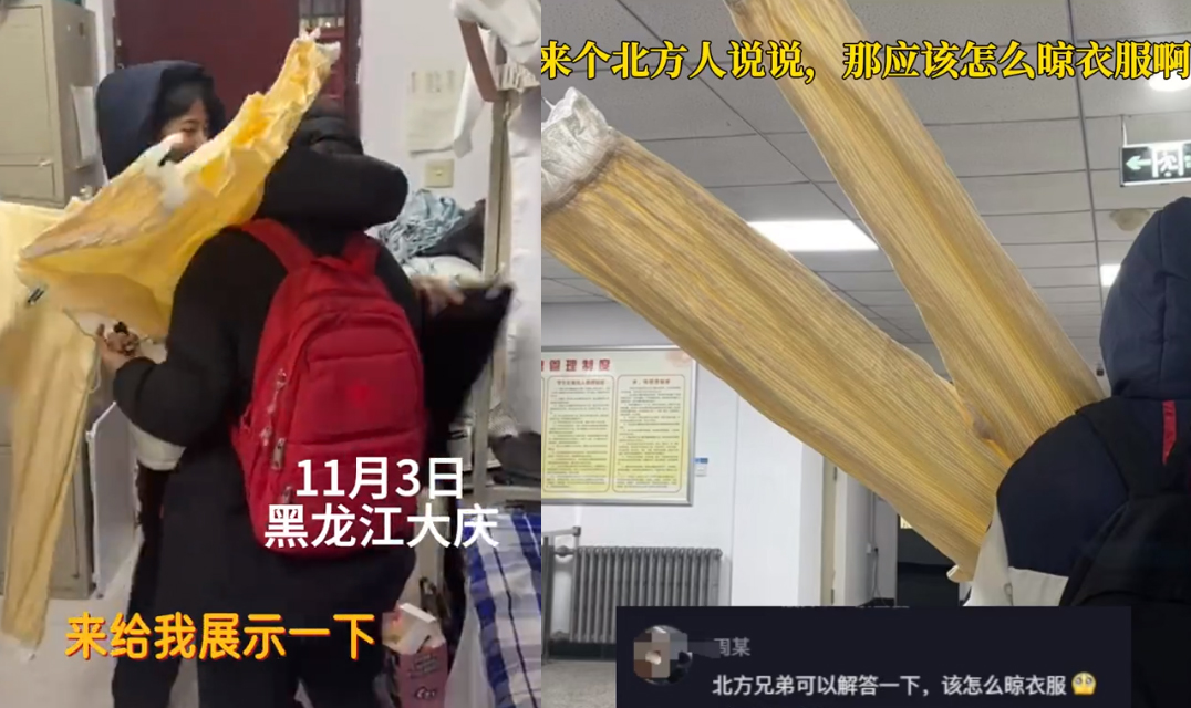 视频 | 女生洗完衣服晾半天被冻住,网友:谁把腐竹做成衣服了?