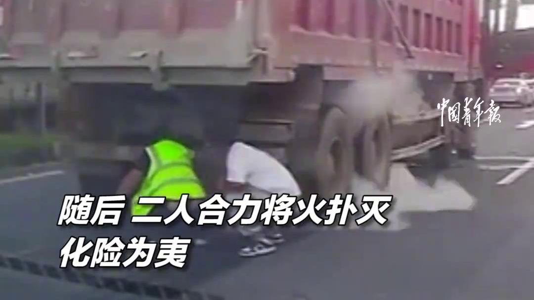 视频 | 大货车行驶途中着火 路过司机合力将火扑灭