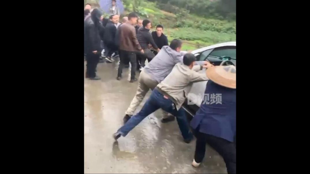 视频 | 轿车翻出道路村民拔河式救援 村民:团结就是力量