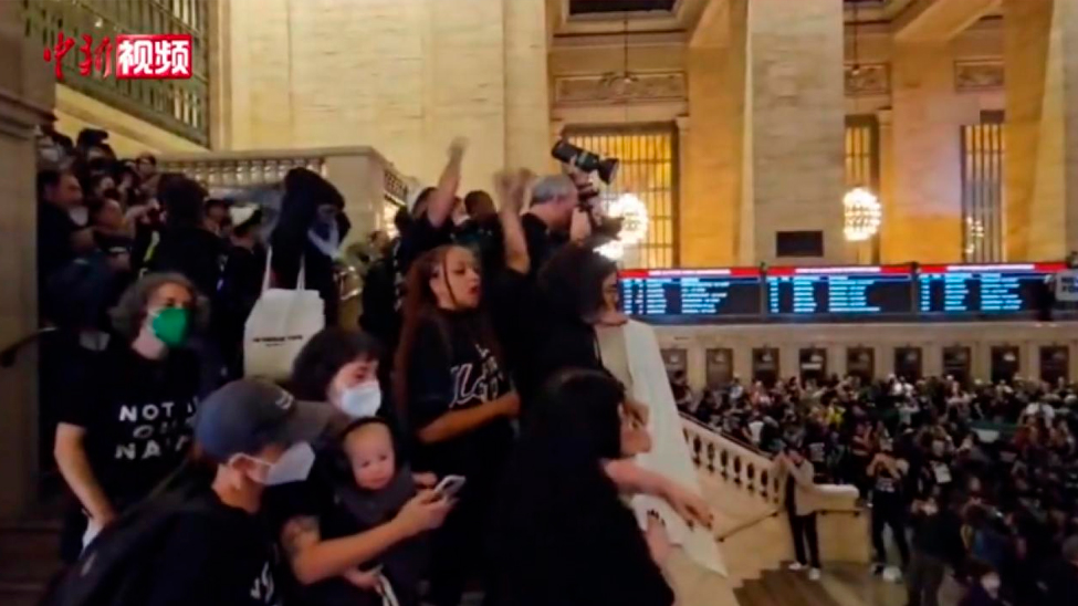 纽约爆发大规模反战游行 大中央车站一度关闭