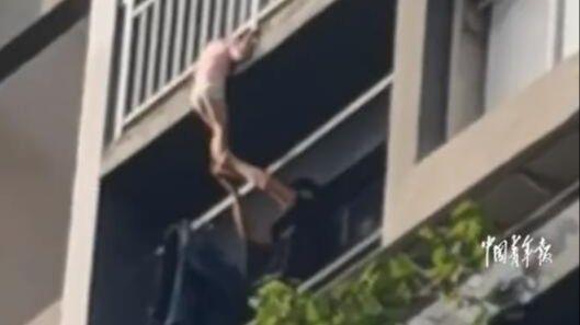 视频 | 重庆一小女孩头部悬挂在8楼阳台 热心邻居翻越阳台救助