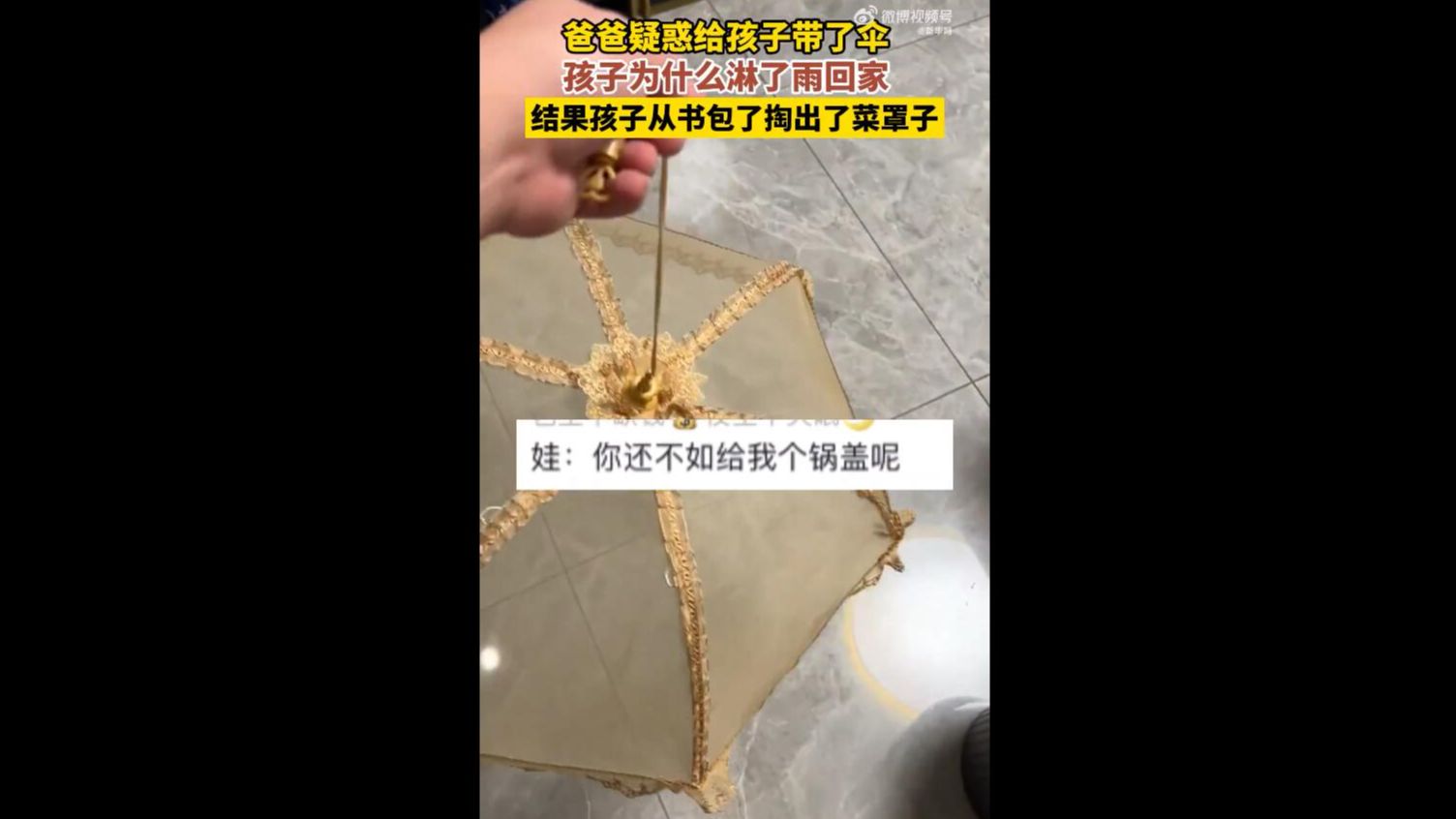 视频 | 绝了!爸爸给儿子书包里装的伞竟是菜罩子