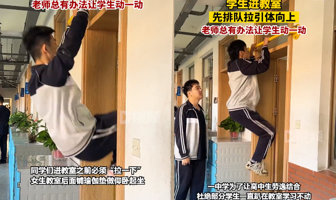 视频 | 学生进教室先排队拉引体向上:老师总有办法让学生动一动