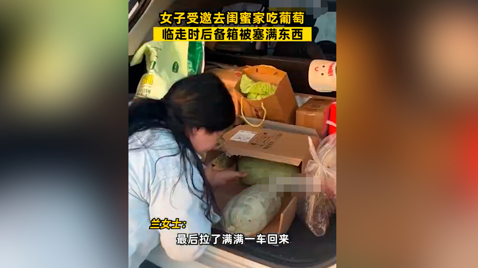 视频 | 女子受邀去闺蜜家游玩 临走时后备箱被塞满东西