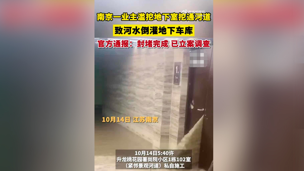 视频 | 南京一业主私自施工致河水渗漏至地下车库 被立案调查