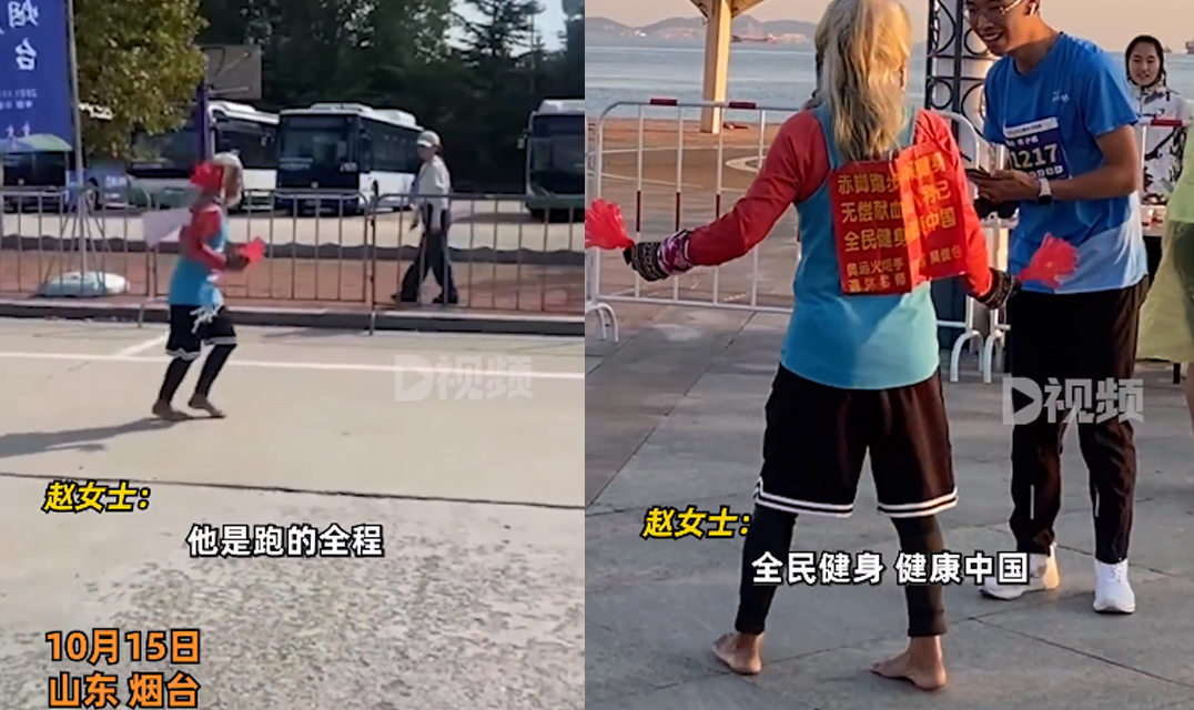 视频 | 老爷爷光脚参加马拉松比赛 路人:这么大年纪还坚持,感觉很难得