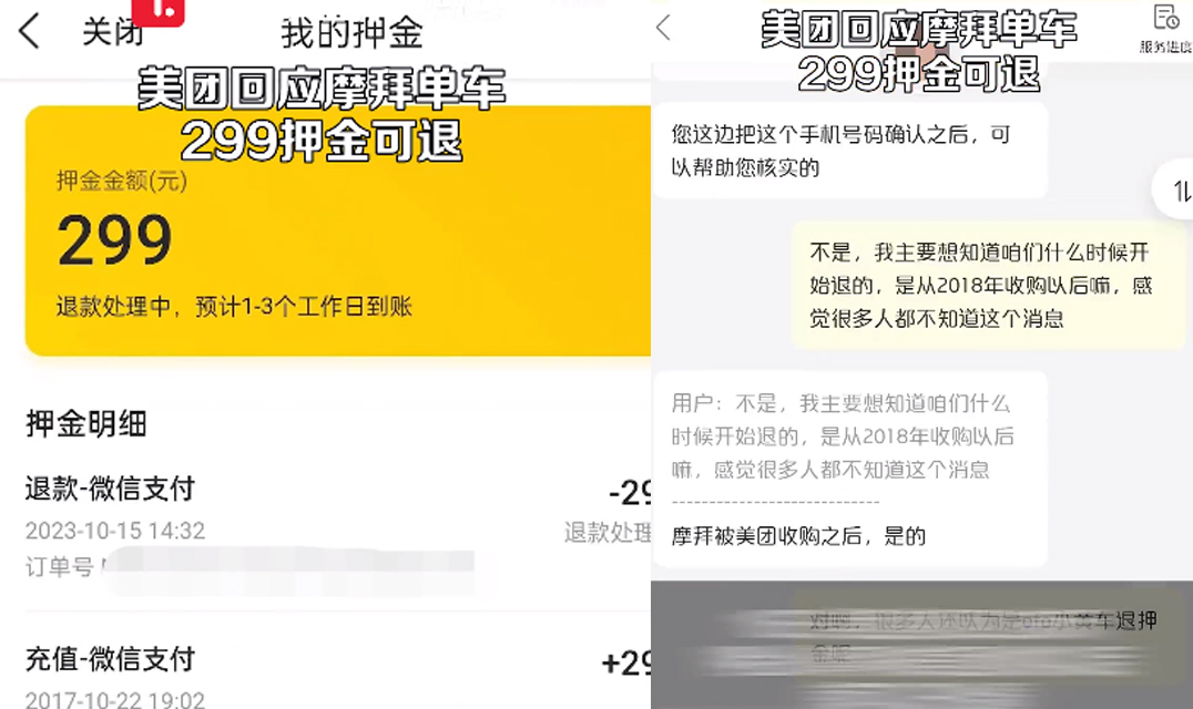 视频 | 美团回应摩拜单车299元押金可退:自收购后一直可以退