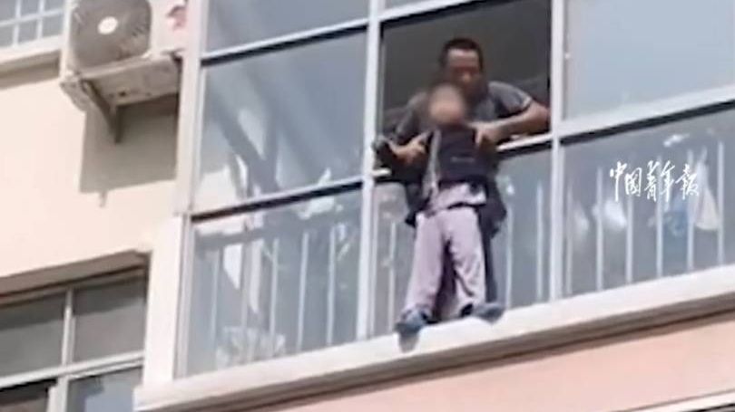 视频 | 小孩头悬7楼阳台护栏邻居翻窗托举 拍摄者:15分钟救援成功