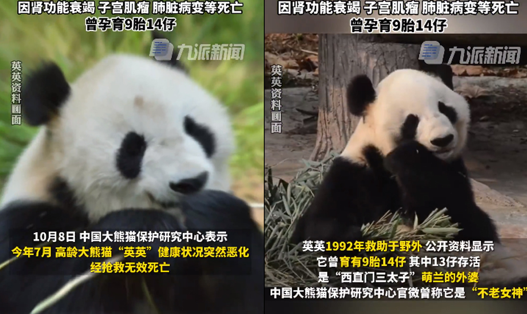 视频 | 大熊猫萌兰的外婆英英去世:31年前被救助于野外