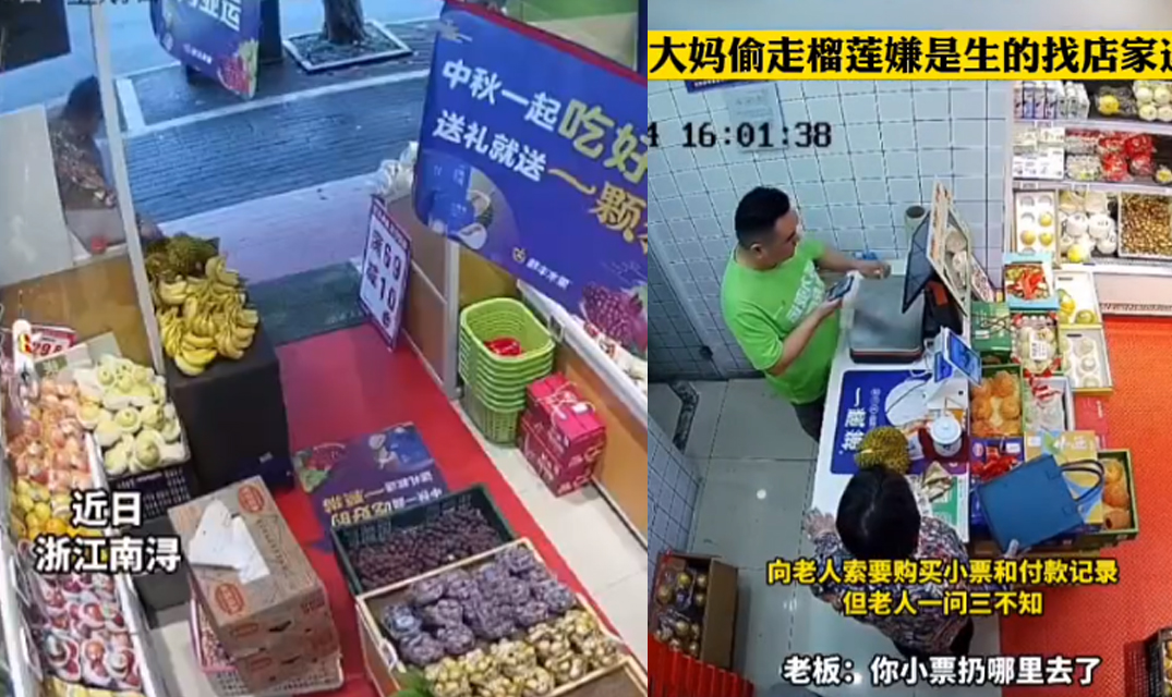 视频 | 大妈偷走榴莲嫌是生的找店家退钱 网友:这勇气是梁静茹给的吗?