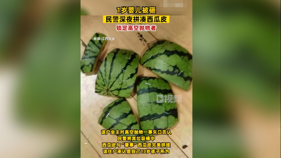 视频 | 婴儿被西瓜皮砸中 民警深夜拼瓜皮锁定高空抛物者