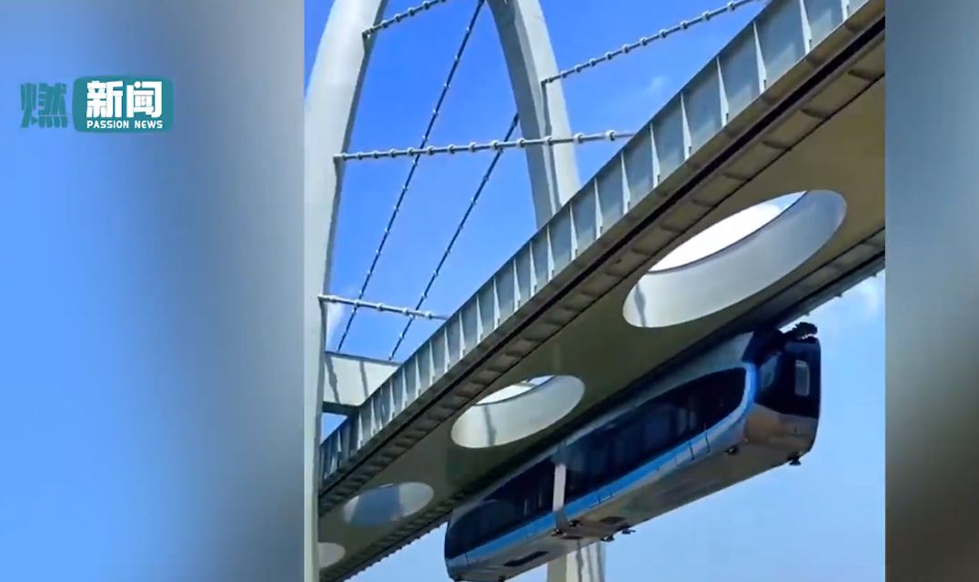 视频 | 网友乘武汉空轨:列车悬空飞驰,脚下悬空体验“低空飞行”