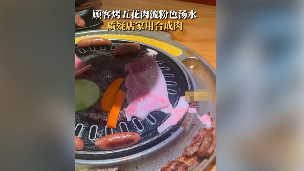 视频 | 顾客烤肉时流出粉色液体质疑吃到合成肉 店家:是肉里的血水
