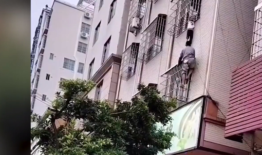 视频 | 点赞!小孩头卡防护栏男子徒手爬窗救援