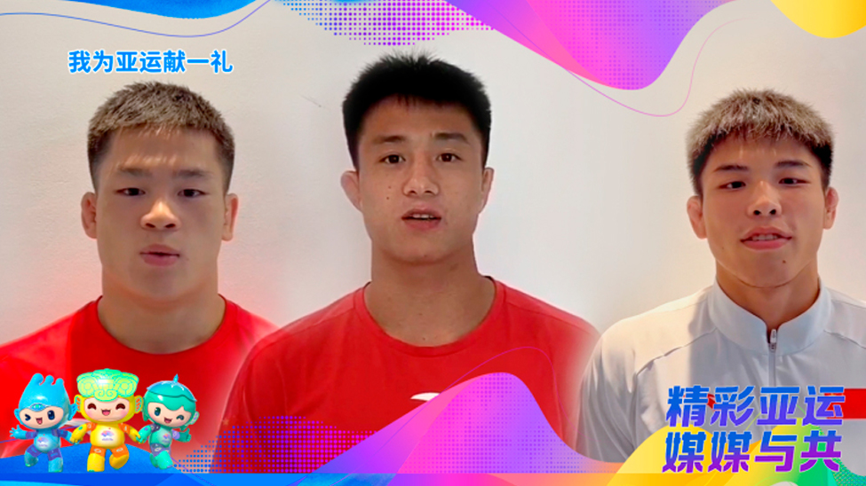 我为亚运献一礼丨中国摔跤运动员们为亚运喝彩