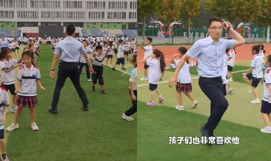 视频 | 90后男老师课间和学生快乐跳操 情动作都很到位!