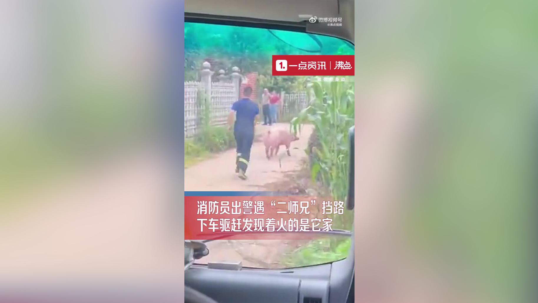 视频 | 消防员出警救火遇“二师兄”跑来带路