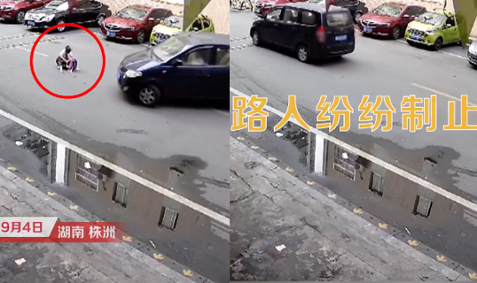 视频 | 女孩蹲马路中间整理书包被卷入车底 路人纷纷大叫提醒司机