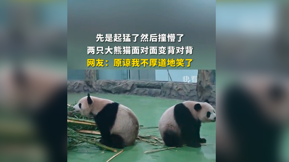 视频 | 两只大熊猫突然起身迎头相撞 撞懵后互相背对对方