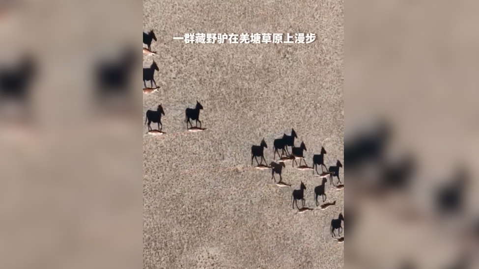 视频 | 无人机拍下梦幻一幕 藏野驴阳光下散步影子像脚踏祥云