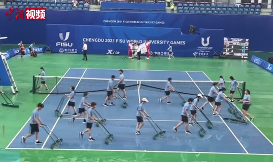 【成都大运会】下雨致网球赛事推迟 志愿者“出奇招”除水