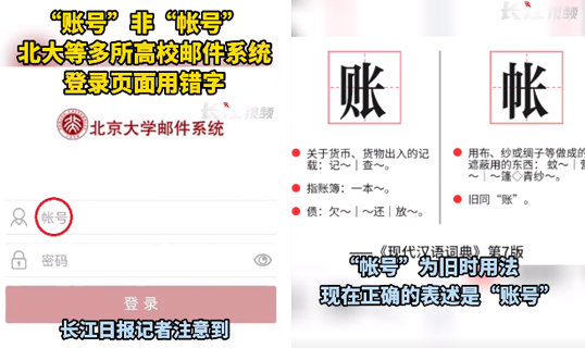 视频 | “账号”非“帐号” 北大等多所高校邮件系统登录页面用错字