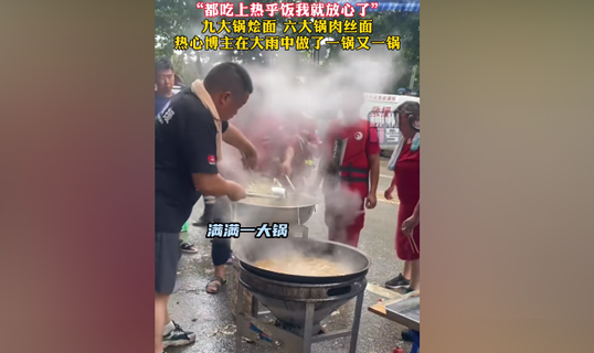 视频 | “都吃上热乎饭我就放心了”!九大锅烩面,六大锅肉丝面,热心博主在大雨中做了一锅又一锅
