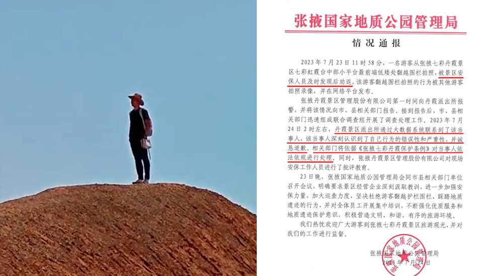 视频 | 甘肃张掖官方通报游客翻围栏踩踏丹霞地貌拍照:将依法依规处理