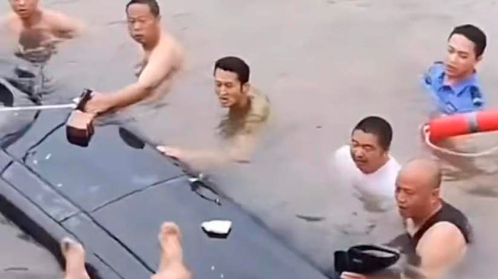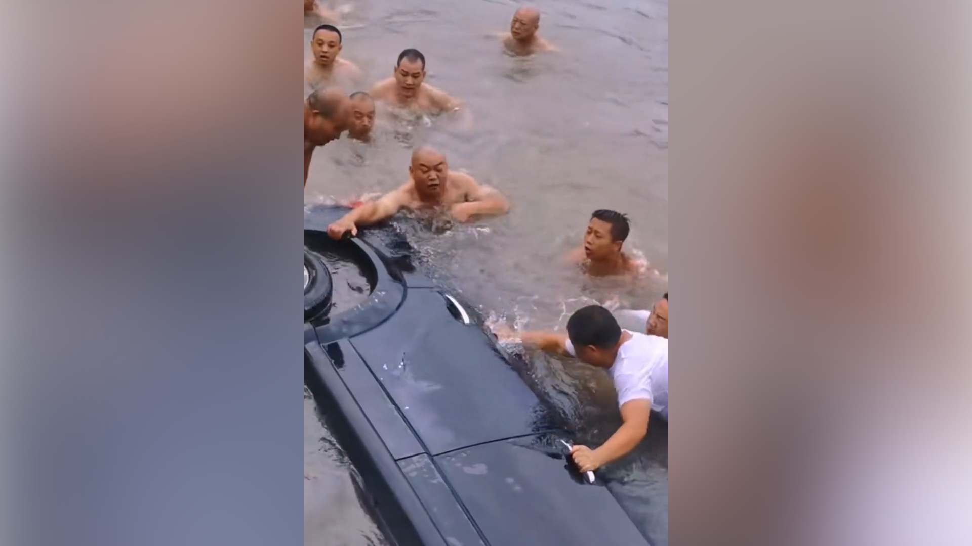 视频 | 小车坠河,路人下饺子式跳水救人