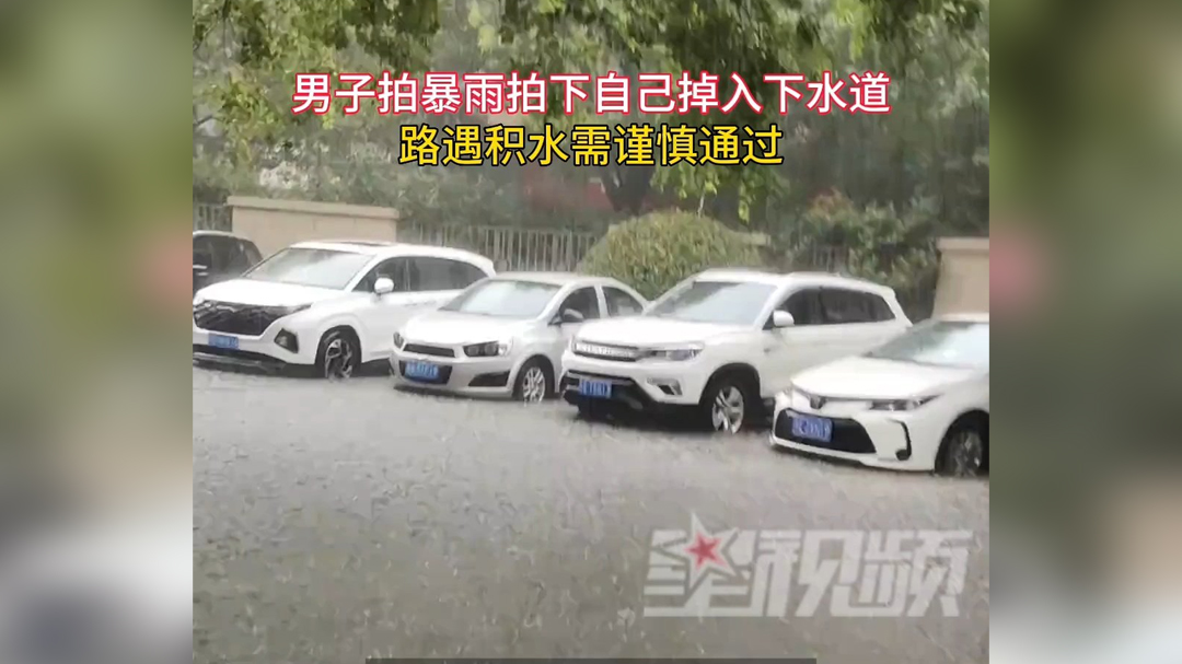 视频 | 男子拍暴雨拍下自己掉入下水道