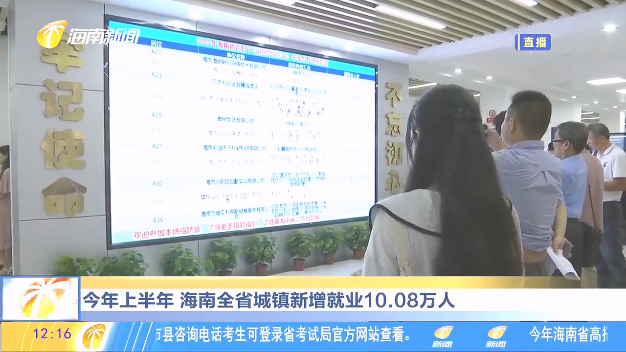 今年上半年,海南全省城镇新增就业10.08万人