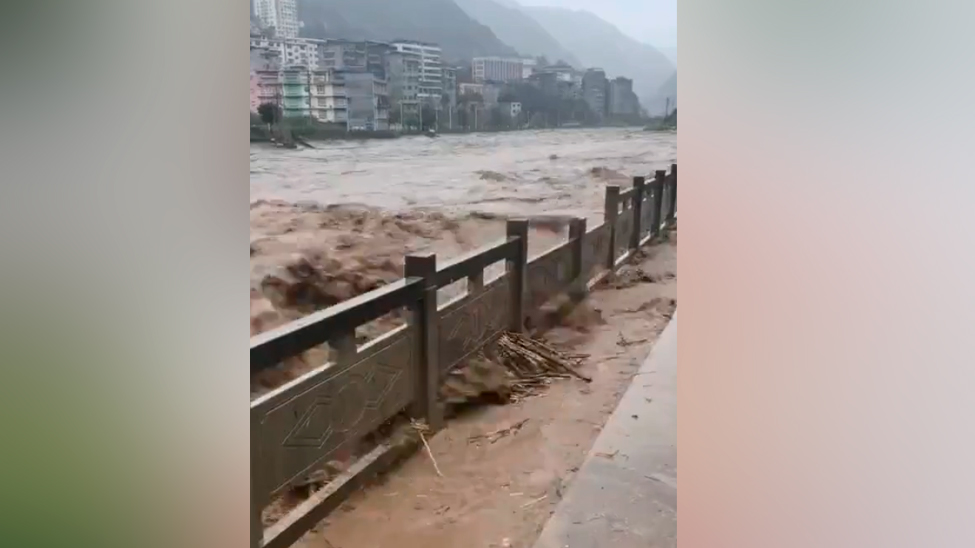 视频 | 重庆遇入汛以来最强降雨 巫山抱龙河护栏被洪水冲击受损