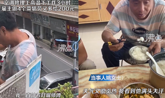 视频 | 空调修理工高温下工作3小时 雇主做4个菜犒劳又多给200元