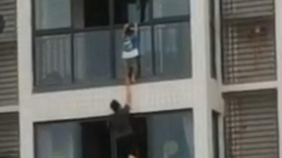 视频 | 4位邻居合力托举悬窗小孩6分钟 目击者:家长赶回后一起救下
