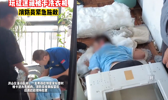 视频 | 注意安全!10岁男孩玩捉迷藏被卡洗衣机
