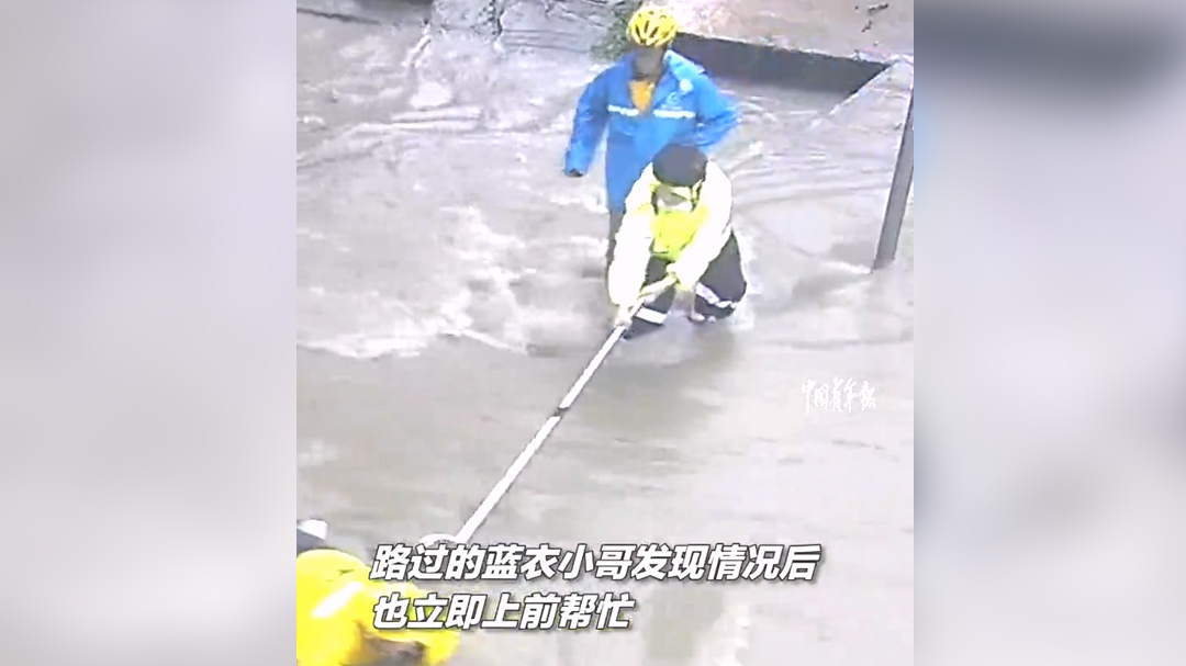 视频 | 惊险!暴雨中他们拉回被冲走的外卖小哥