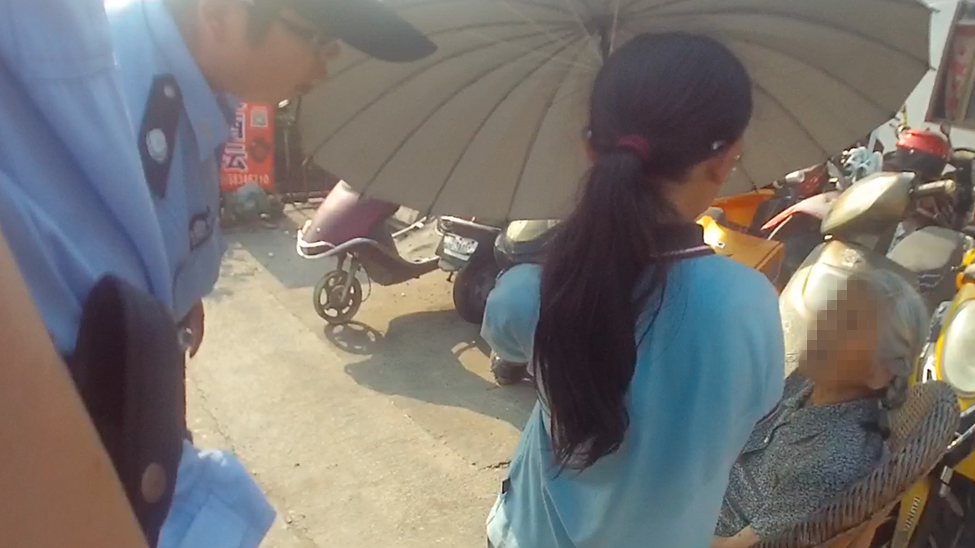 老人中暑晕倒在路边 10岁女孩为老人撑伞守护