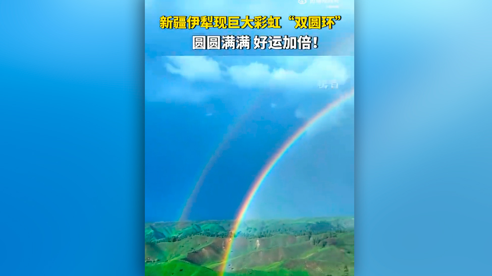 视频 | 好运加倍!新疆伊犁现巨型双彩虹