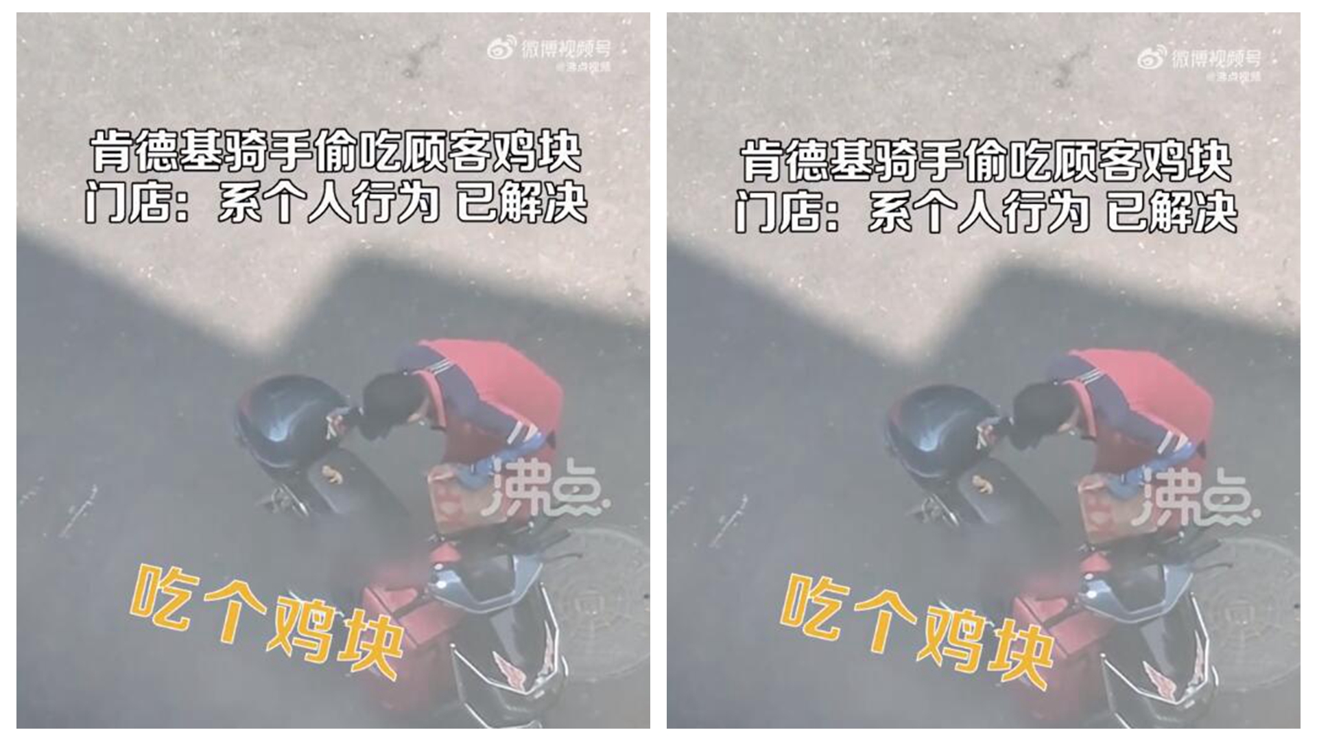 视频 | 肯德基骑手偷吃顾客鸡块被拍下 门店:属个人行为 已为客户退餐费