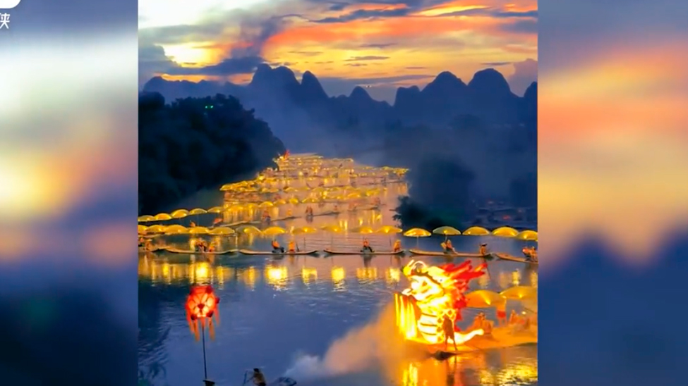 视频 | 广西阳朔“巨龙”巡游迎端午 灯火绚烂与山水交相辉映
