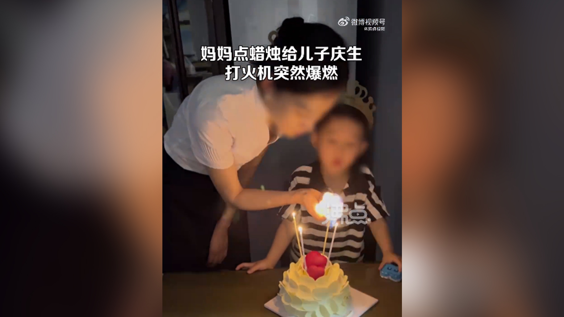 视频 | 妈妈点蜡烛给儿子庆生打火机突然爆燃:打火机有裂痕,漏气了